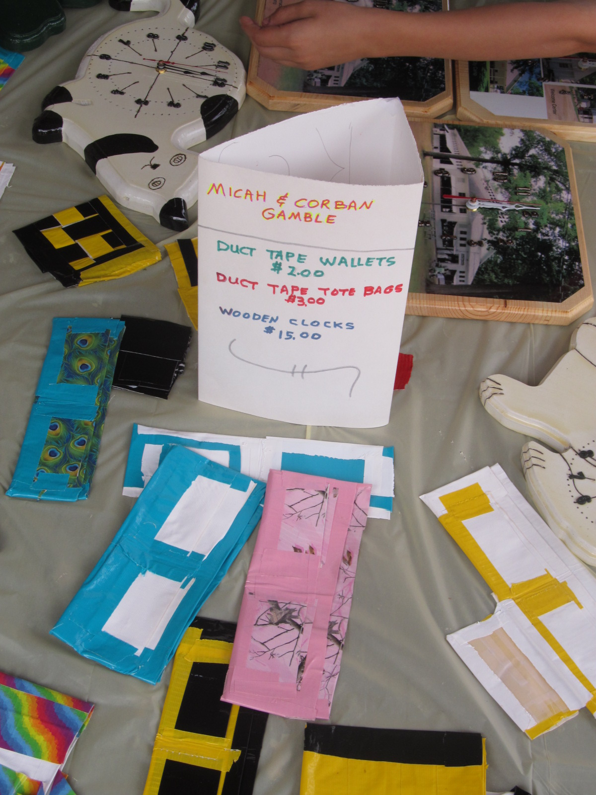 And my boys? They made $389 selling duct tape wallets, purses, and wooden clocks – raising the most money of any of the other tables.