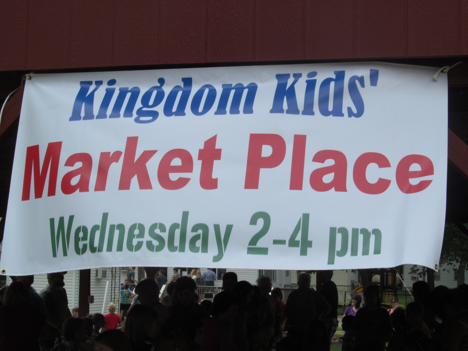 For two hours the marketplace was mobbed by people. Fellow campers arrived, ready to spend money to support the kids who had worked so hard, with all the proceeds going to buy a motorcycle for a mission in Africa. Children from all over the camp came together to sell lemonade, cookies, bracelets, candy, and other items. (My personal favorite table was the one that sold slime for fifty cents.) Many of the kids sold all their merchandise, and my boys were thrilled when their wallets sold quickly. They also sold several clocks.