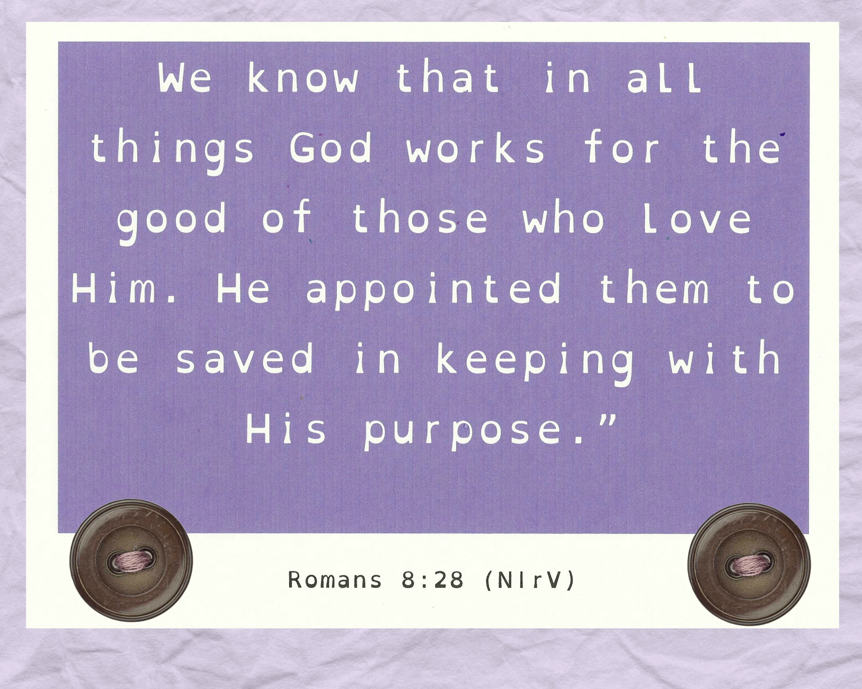 Romans 8:286.  Romans 8:28.  God can use anything in our lives to bring about a fantastic result!  I don’t know what He has planned for my child and his dyslexia, but I know that He has promised to make good out of it, and that gets me pretty excited!