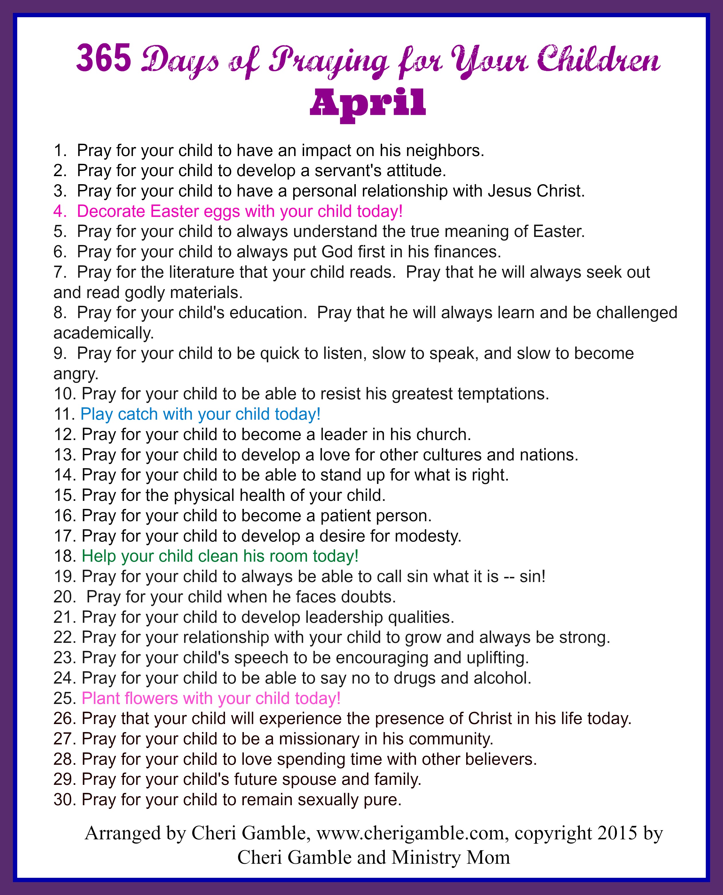 365 Days of Praying for your children April printable