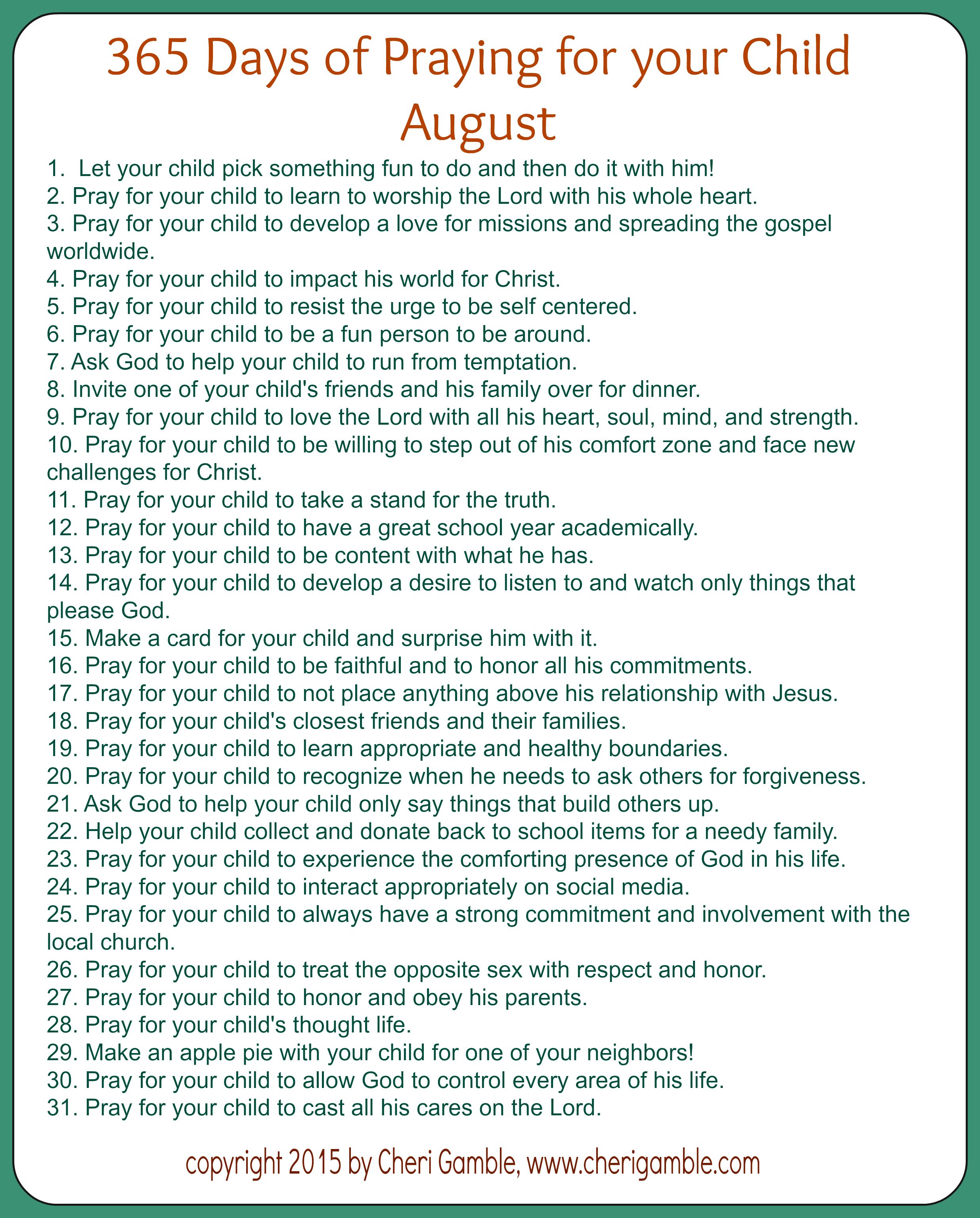 365 Days of Praying for your child August list