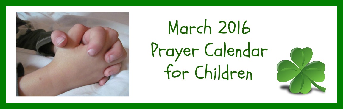 It’s March!!! Spring is on the way . . . and it’s a GREAT time to pray! Here is the prayer calendar for children for the month of March. Print it off (or scroll down and find it all right here) and then spend time praying with your children every day this month.