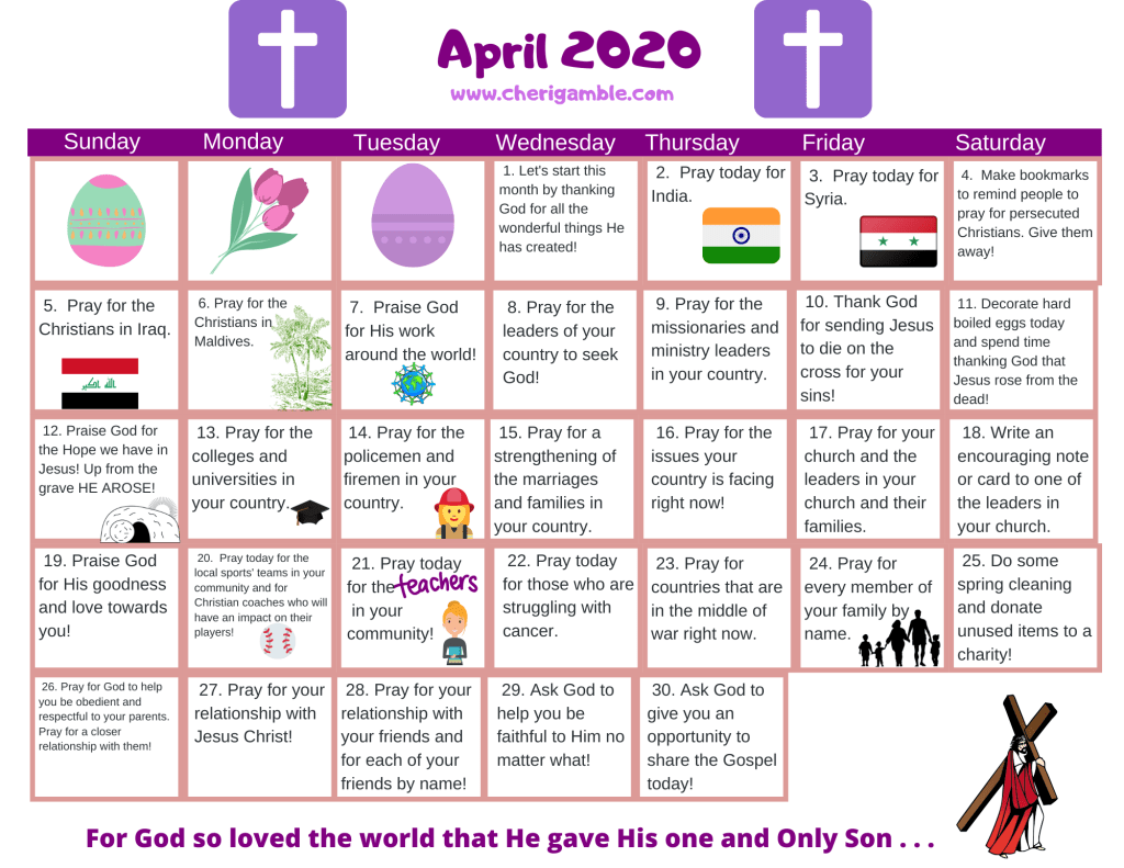 And now, here is April’s prayer calendar for kids. Have a great month!