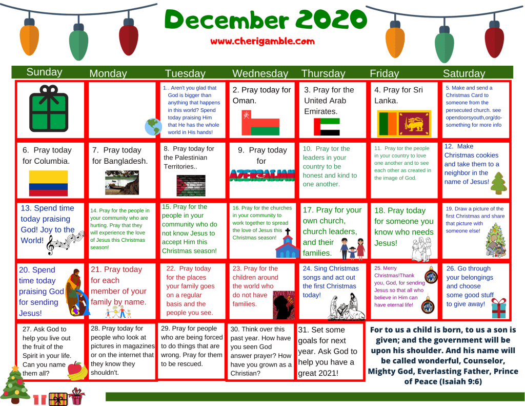It’s the last month of the year! End your year right by spending time in prayer each day! Use some of the suggestions in this prayer guide to help direct your prayers — and PRAY BIG!