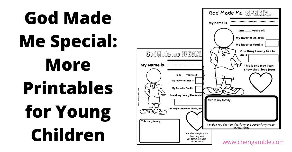 I hope you (and your kids) enjoy these printables! If you do not find what you are looking for here, you might enjoy my previous “God Made Me Special” Printables Post.