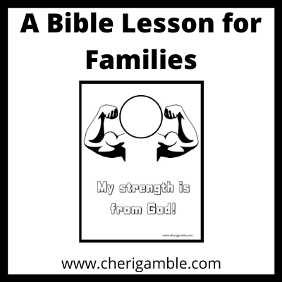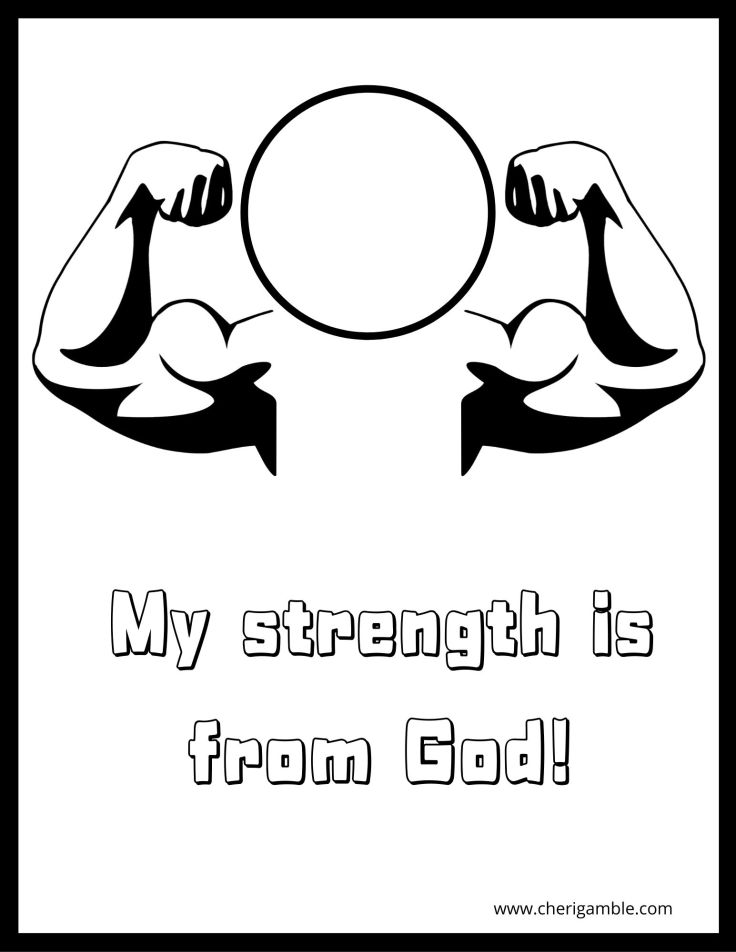- Print off the pdf below. If you are able, take a picture of each person in your family, print it off, and cut the head out. Glue the head on the picture of the muscles and color the rest of the page. (Another fun way to do this would be to cut the head and muscles out and glue them on a craft stick.) Talk about how God gives you strength as you are working on the project. (If you are unable to print off pictures, have everyone draw their face on the picture).