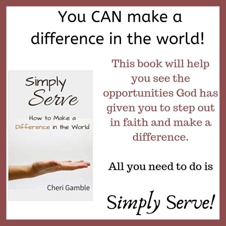 Before I go, in case you didn’t know, I wrote a short book on service called “Simply Serve”. In it, I talk more about what it means to serve your family and community and give some practical ways that you can make a difference — simply by serving (hence the title “Simply Serve” 🙂 ) If you are interested in getting a copy of the book, click on the picture at the end of this post. Thanks!!