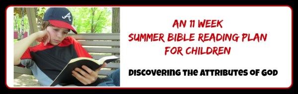 We need to be intentional about helping our children grow as Christians and the summer is the perfect time to make this happen! In this post, you will find my summer Bible reading plans for children for 2014. Each week focuses on a different attribute of God and includes a Psalm, an Old Testament and... Continue Reading →